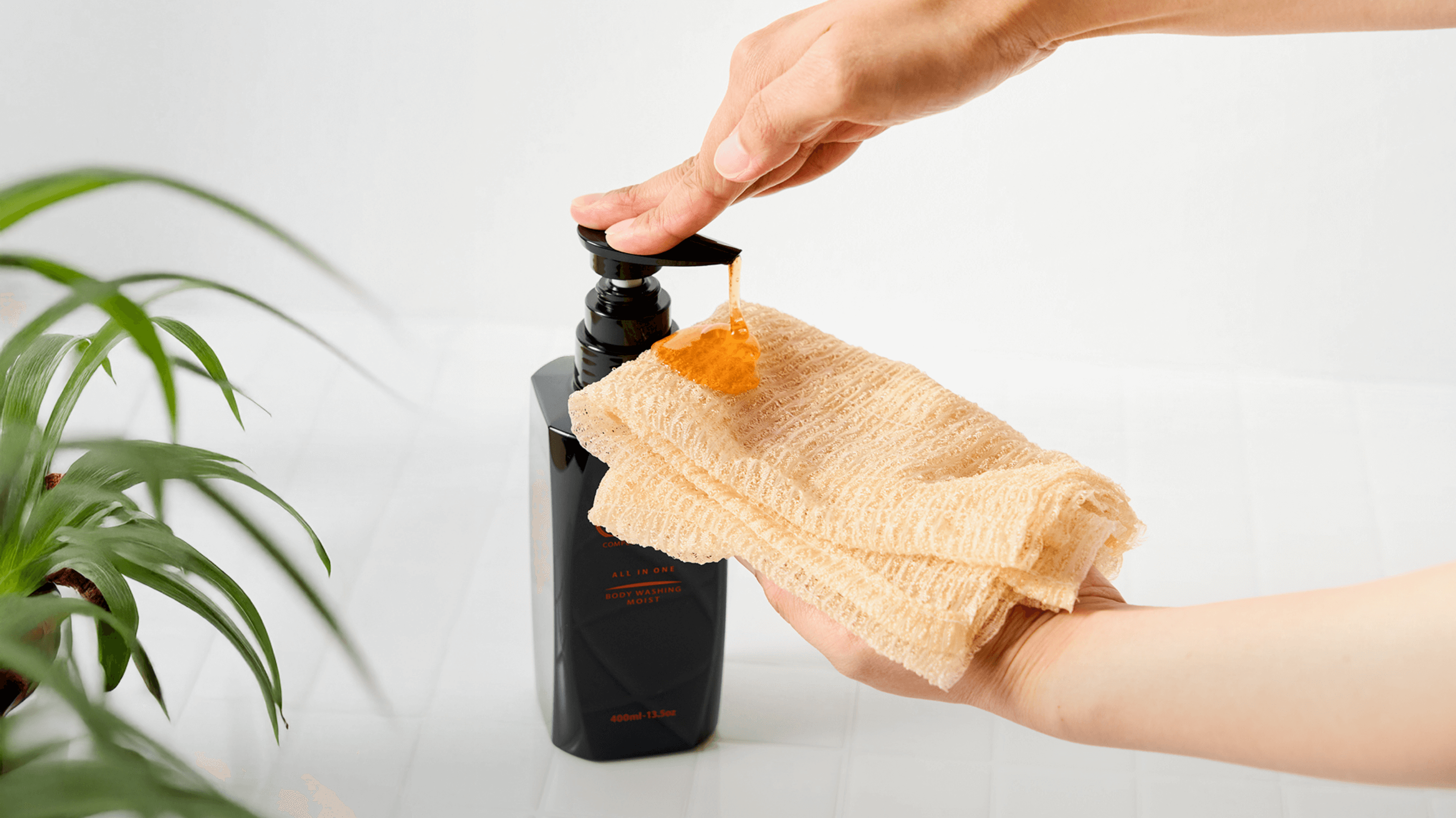 湿らせたタオルやスポンジなどに適量を取り、よく泡立ててから全身を洗い、その後すすいでください。