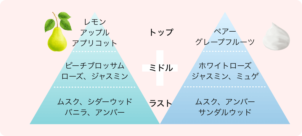 ジャスミンやピーチブロッサムがやさしく寄り添い、バニラとアンバーのぬくもりが一日の終わりを包み込む、わたしだけの静かな時間へ。